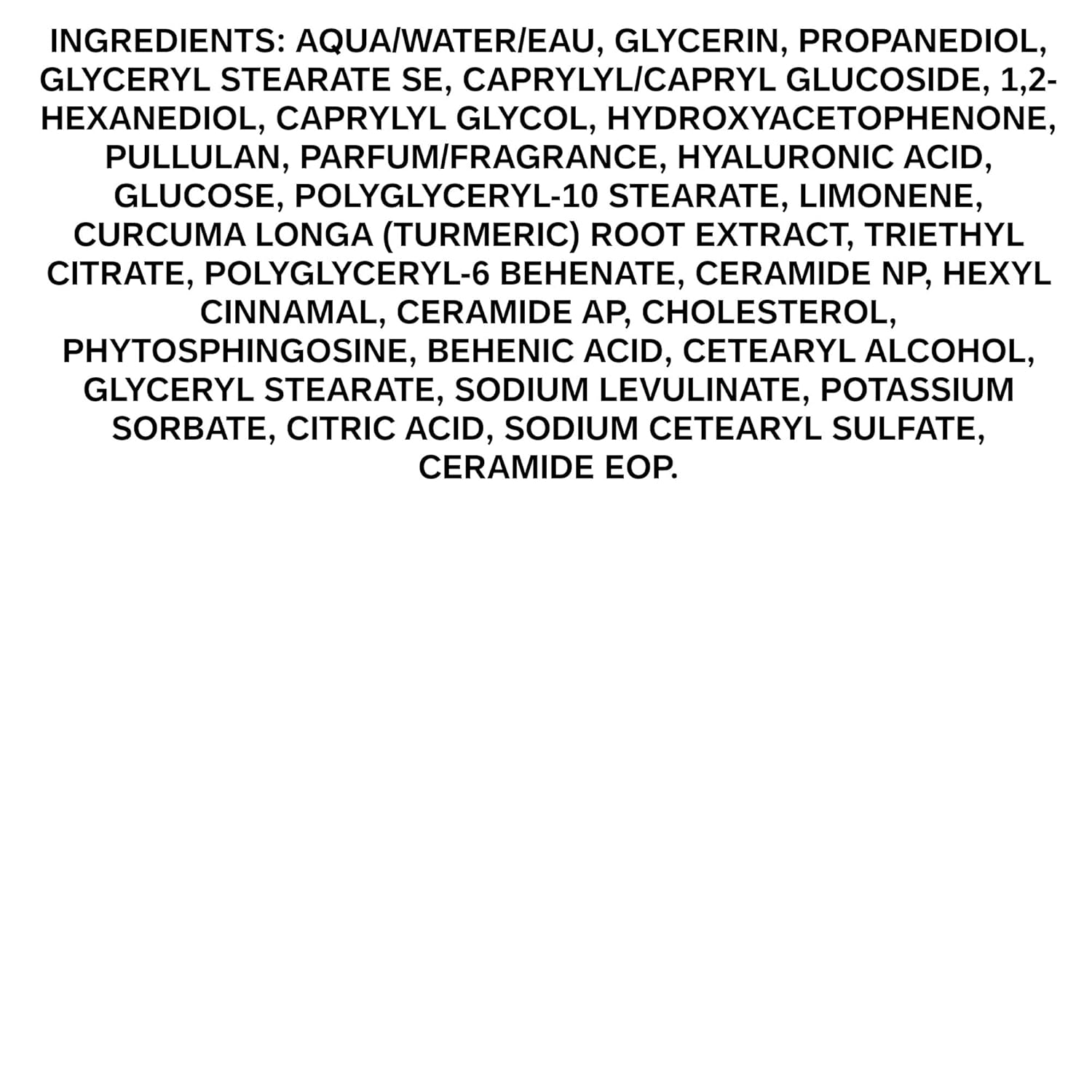 - Key Ingredients: Ceramides, Glycerin, Hyaluronic Acid, Turmeric Root Extract