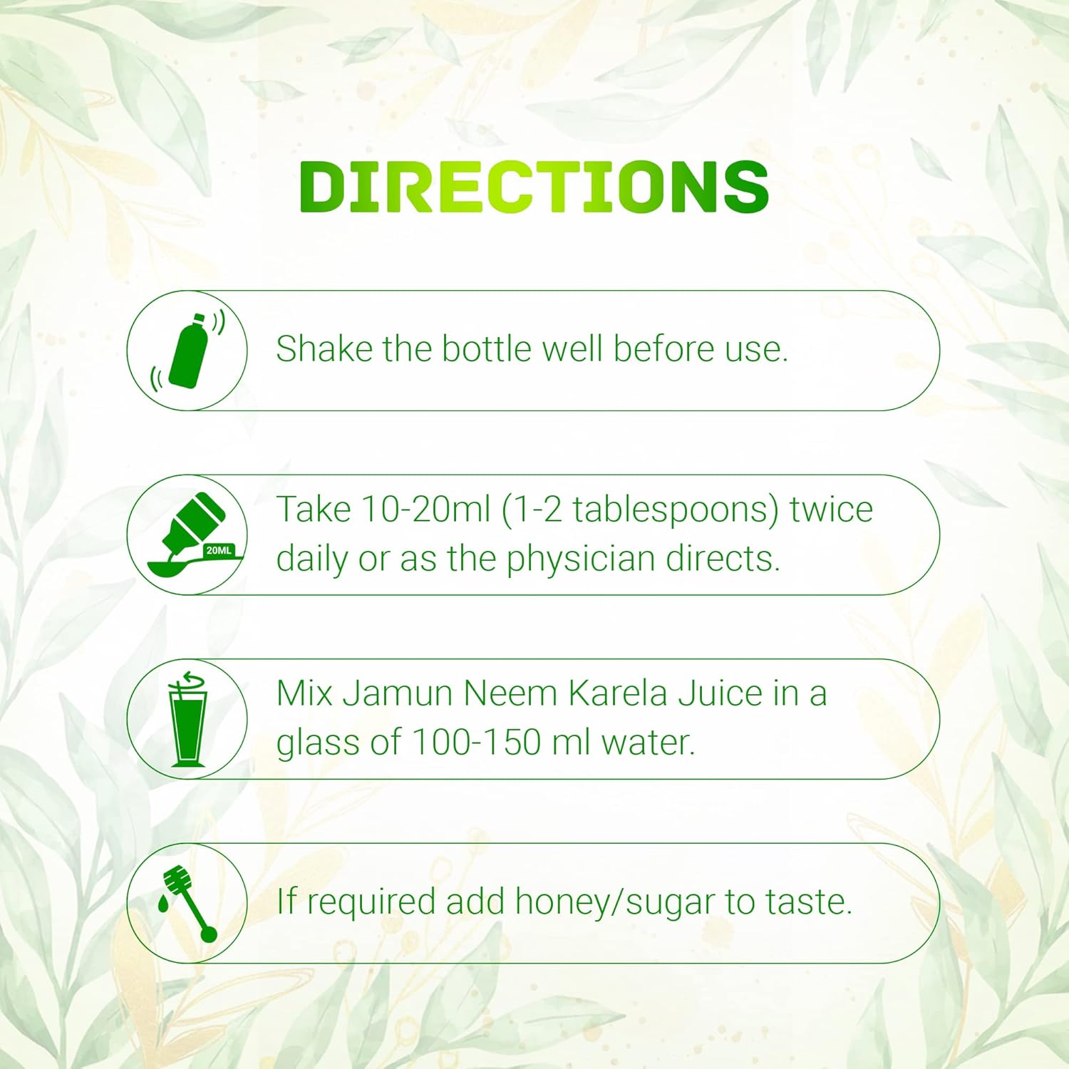 Dabur Jamun Neem Karela Juice combines the health benefits of Jamun and Karela Fruits with Neem leaves to help keep up healthy levels of blood sugar. It is an immunity booster which helps promote healthy glucose levels. It not just helps boost the metabolism, but also aids for a healthy weight and is good for your digestive system. It also has antioxidant properties, helps stimulate immune functions and aids in digestion. It is good for liver & skin health too. It is 100% Ayurvedic, Pure, Natural & Safe, free from Synthetic Colours and flavours. Dabur Jamun Neem Karela Juice is part of Dabur’s Ayurvedic Health Juices range with other variants being Dabur Amla Juice, Dabur Giloy Juice, Dabur Aloe Vera Juice and Dabur Giloy Neem Tulsi Juice. All of these variants with their key Ayurvedic ingredients are excellent immunity boosters, 100% Ayurvedic, free from synthetic flavour & colour, completely Pure, Natural & Safe.