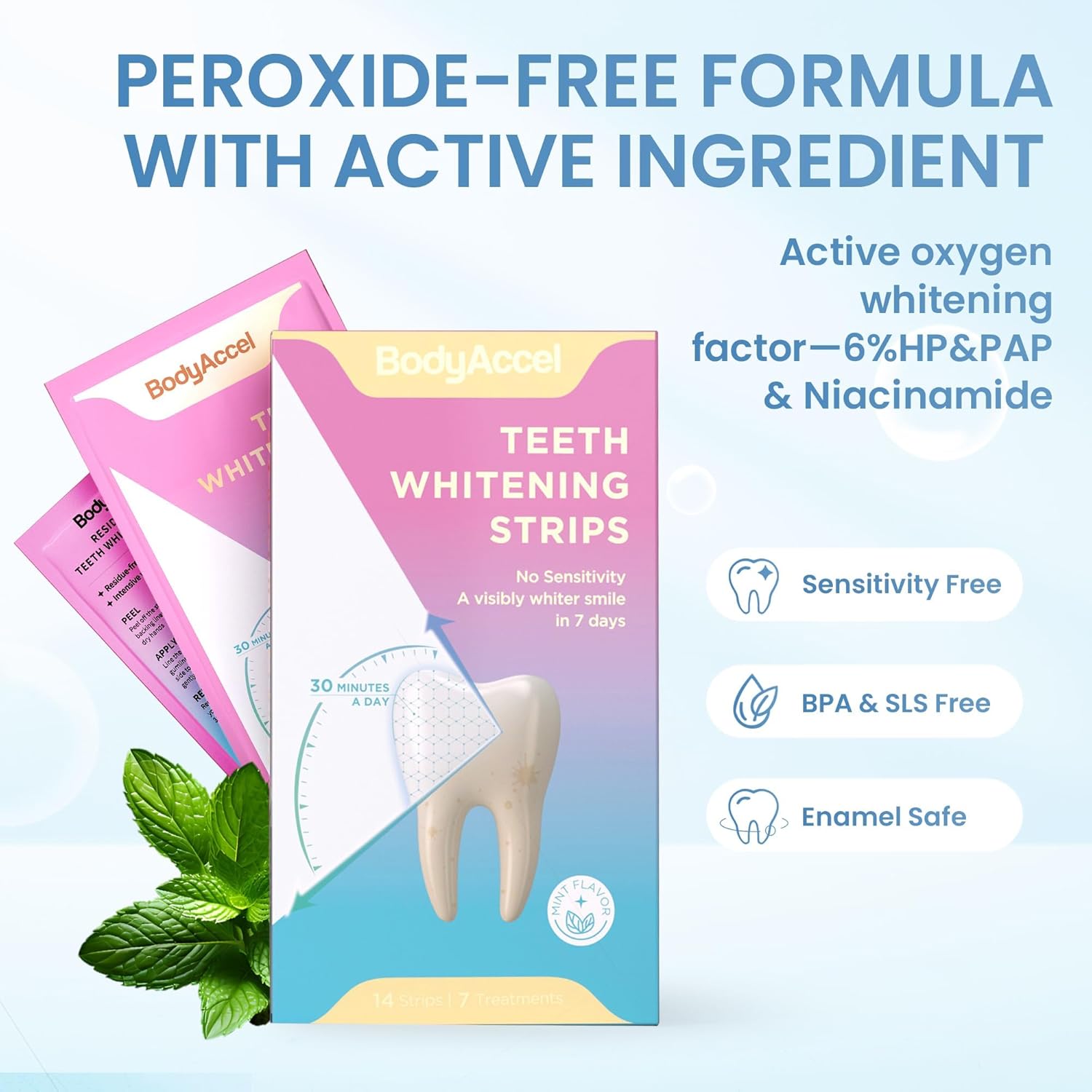 BodyAccel Teeth Whitening Strips – 7/14 Day Kit, Residue-Free, Enamel-Safe, Intensive Whitening (14 Count)