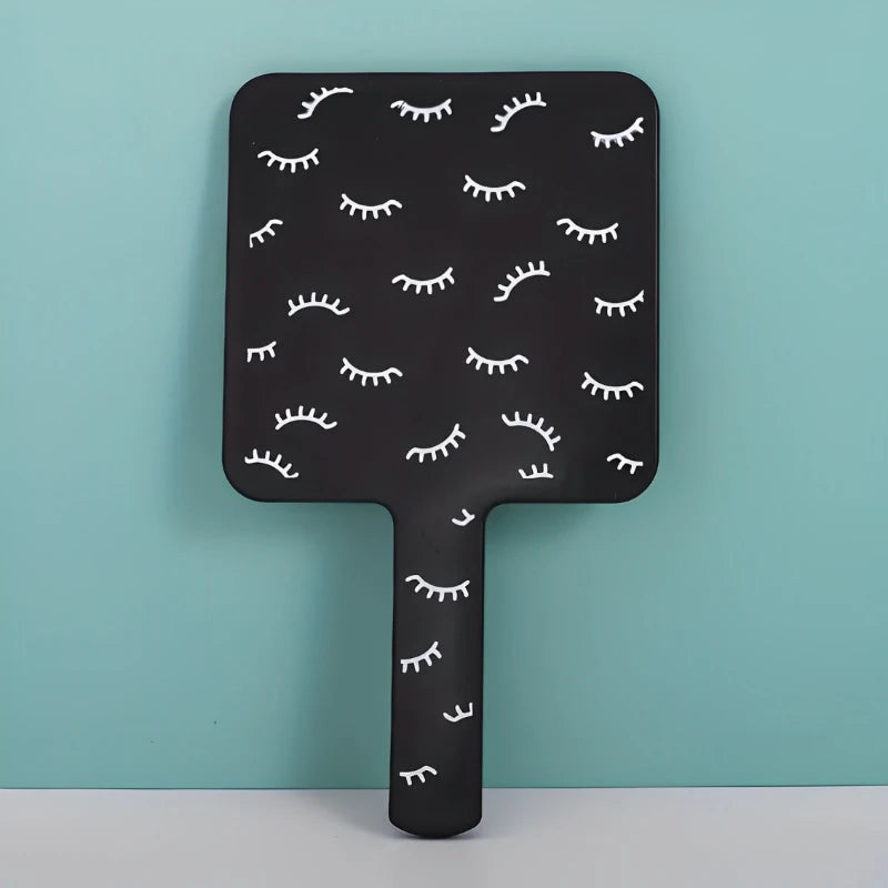 مرآة مكياج مربعة محمولة باليد لتمديد الرموش - مرآة زينة عالية الدقة بمقبض