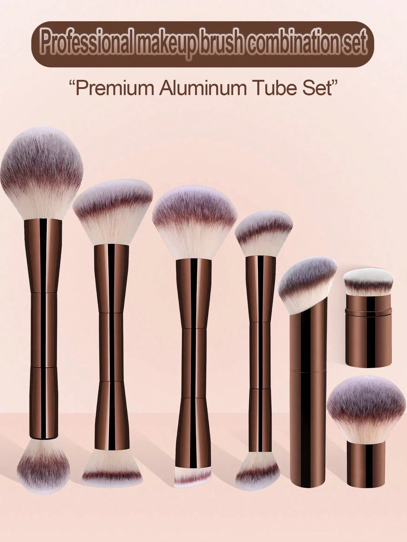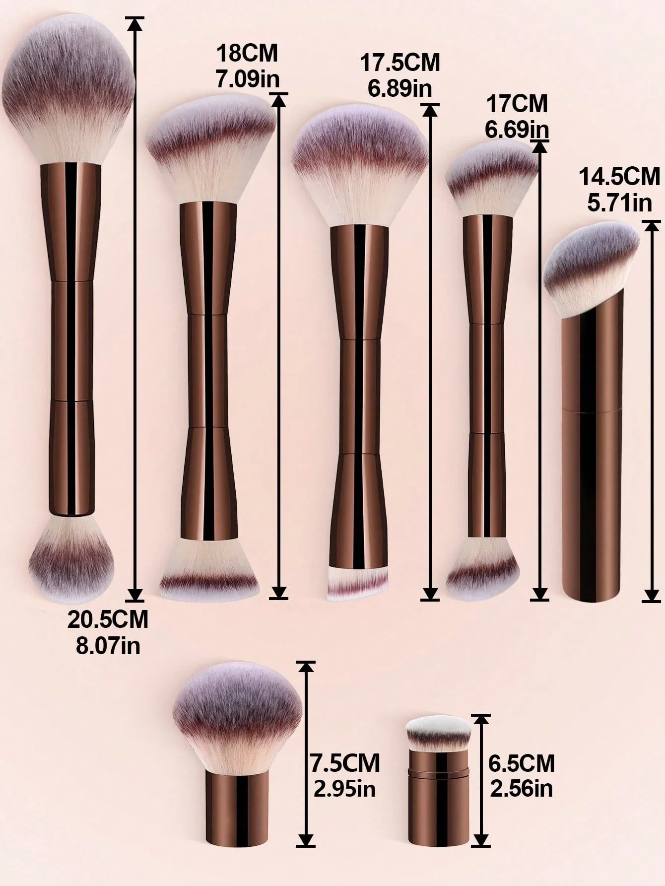 مجموعة فرش مكياج احترافية من لوكس بلند، ٧ قطع | فرش ثنائية الأطراف وفرشاة كريم أساس