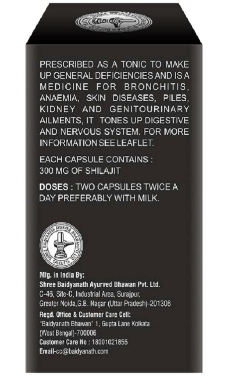 - 1 × Bottle of Baidyanath Shodhit Shilajit Capsule (30 Tablets)