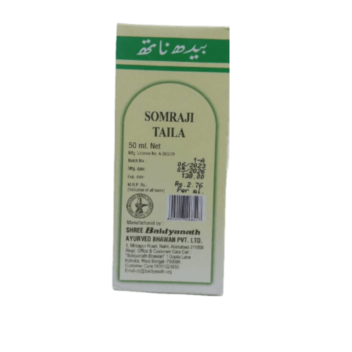 Baidyanath Somraji Tel is a traditional Ayurvedic oil formulated to support healthy, clear, and balanced skin. Enriched with Bakuchi (Somraji) seeds, this herbal oil helps address a wide range of skin conditions including itching, flaking, pigmentation issues, redness, and fungal infections.