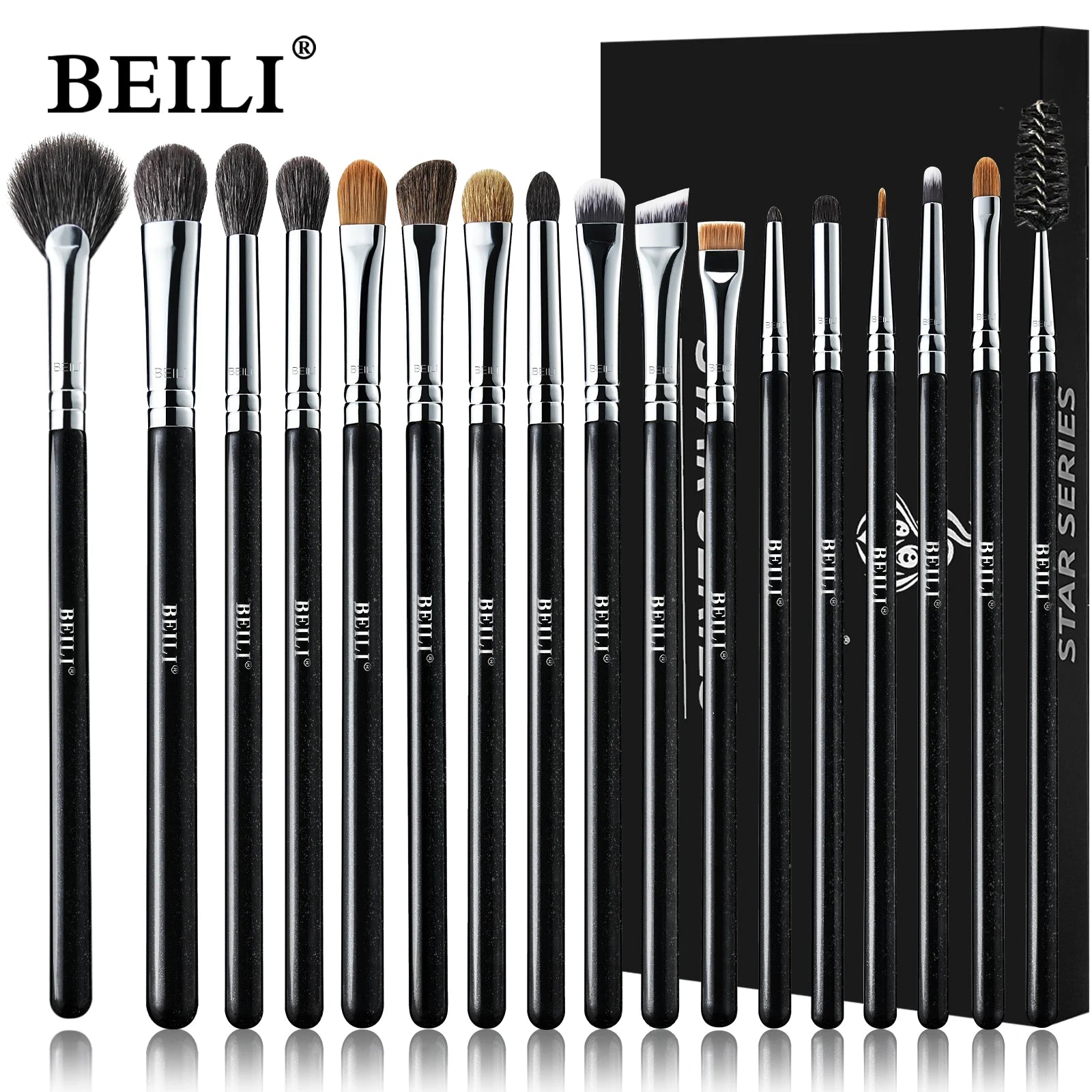 Set de 30 brochas de maquillaje negras BEILI – Pelo de cabra y sintético, kit profesional C150