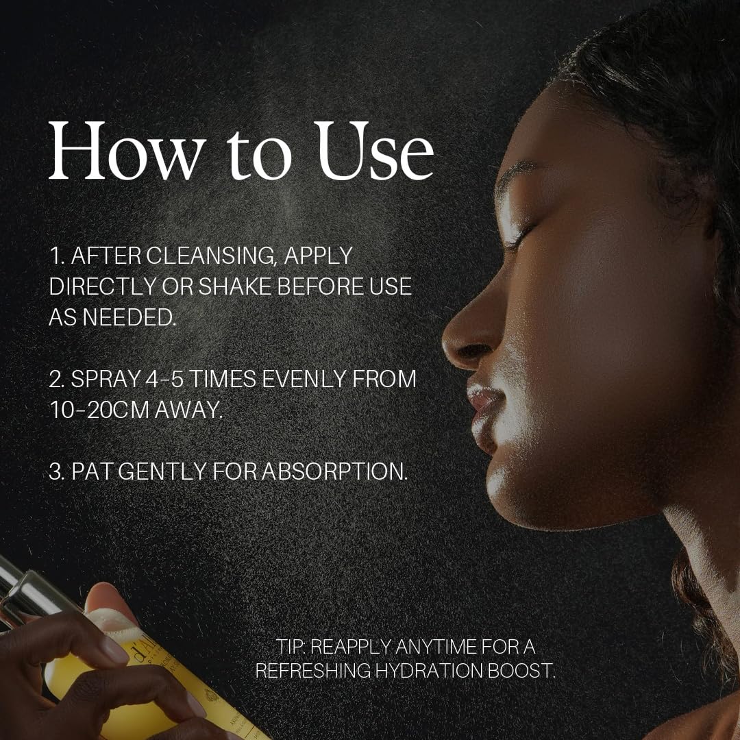 - How to Use: Shake well and hold 6–8 inches away. Mist evenly over the face with eyes closed. Can be used as a toner, hydrating mist, or setting spray.