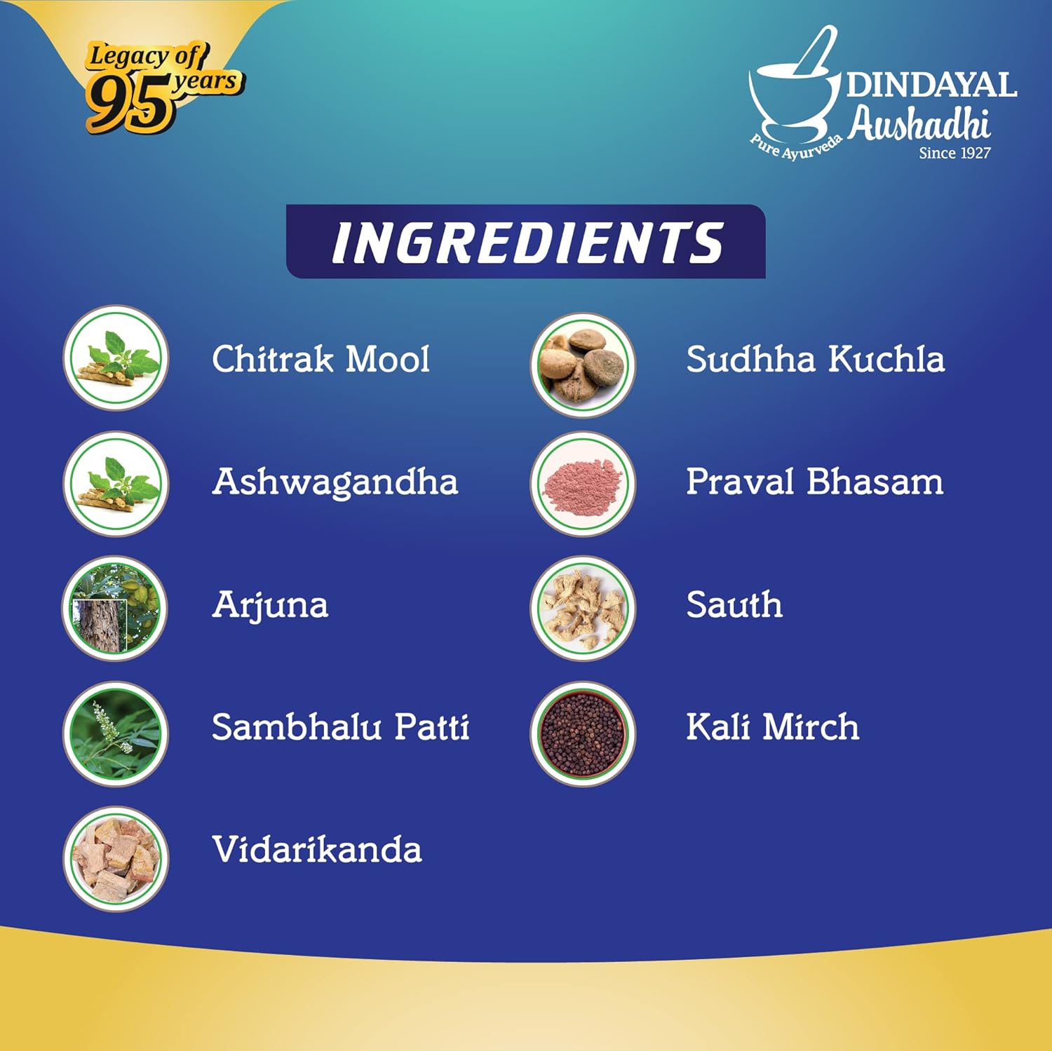 | Key Ingredients | Ashwagandha, Arjuna, Rasna, Shilajeet |