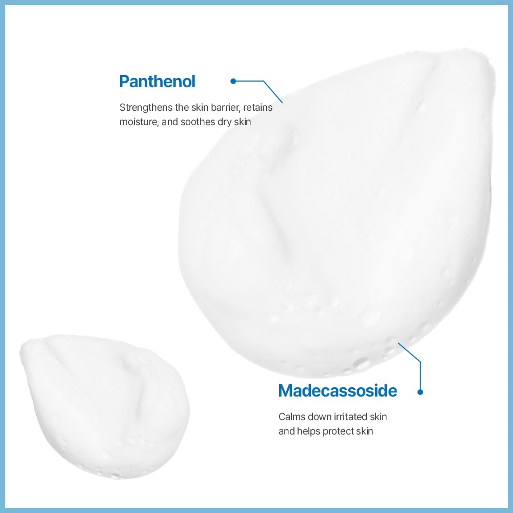 This soft, whipped-cream texture foam reduces skin friction and cleanses gently without stripping natural moisture. Infused with panthenol and madecassoside, it helps strengthen your skin barrier, calm irritation, and maintain a balanced pH for a healthy glow.