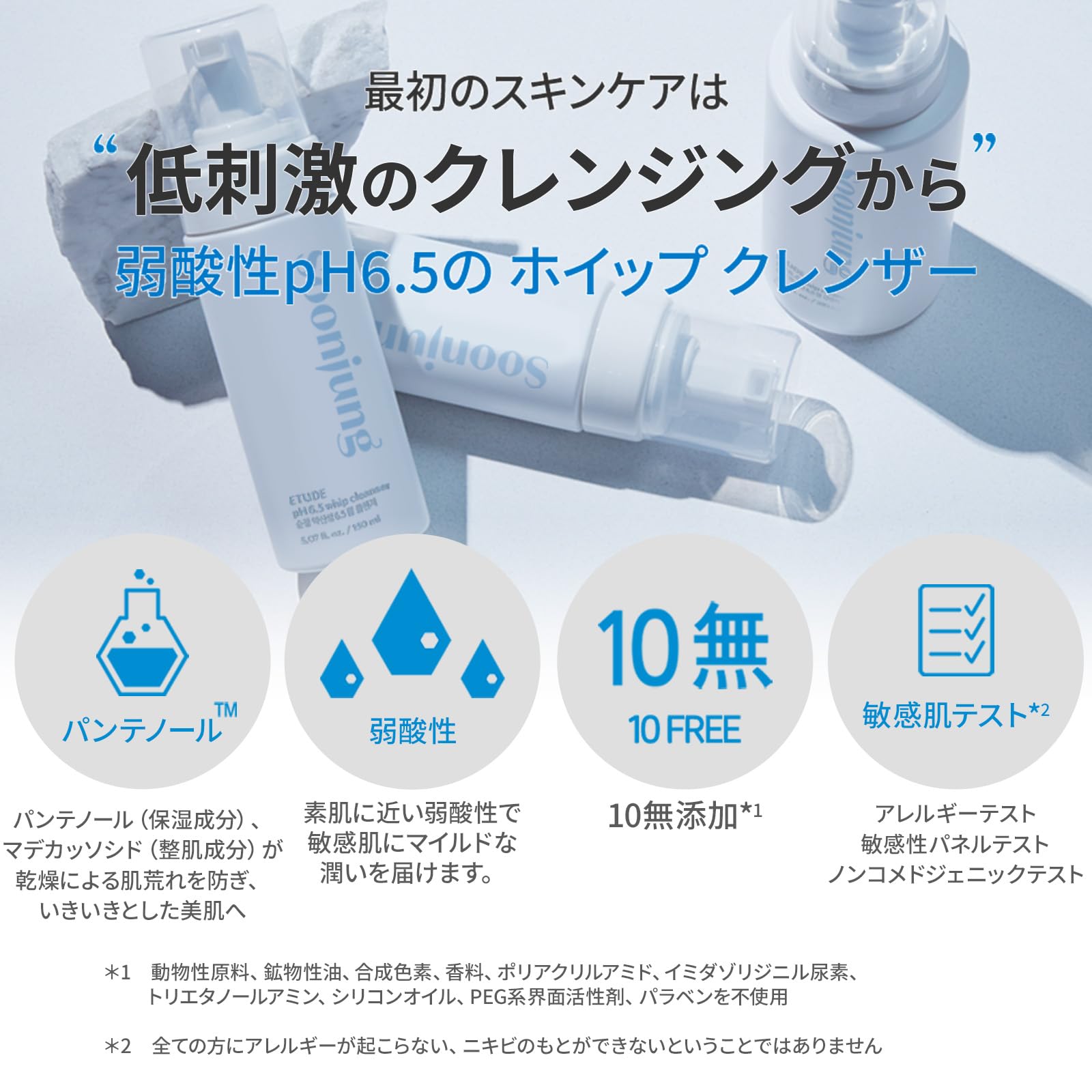 ETUDE SoonJung pH 6.5 Whip Cleanser – Gentle Hydrating Foam Face Wash for Sensitive Skin | Vegan, Non-Comedogenic, Low-pH Korean Cleanser (150ml)