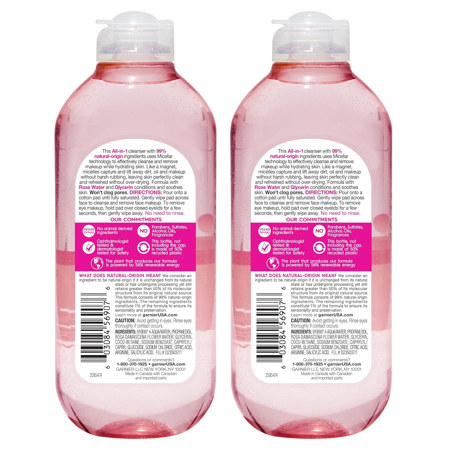Garnier Micellar Water with Rose Water & Glycerin – Hydrating Makeup Remover & Cleanser for All Skin Types, Vegan & Cruelty-Free (13.5 fl oz, Pack of 2)