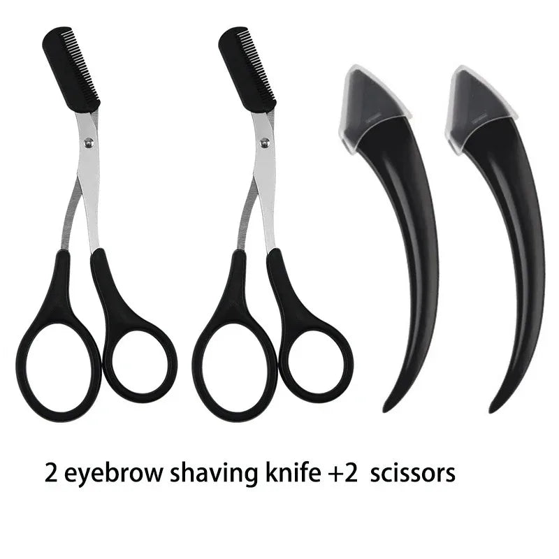 - 1 × Cuchillo para recortar cejas con herramienta combinada de navaja, peine y tijeras