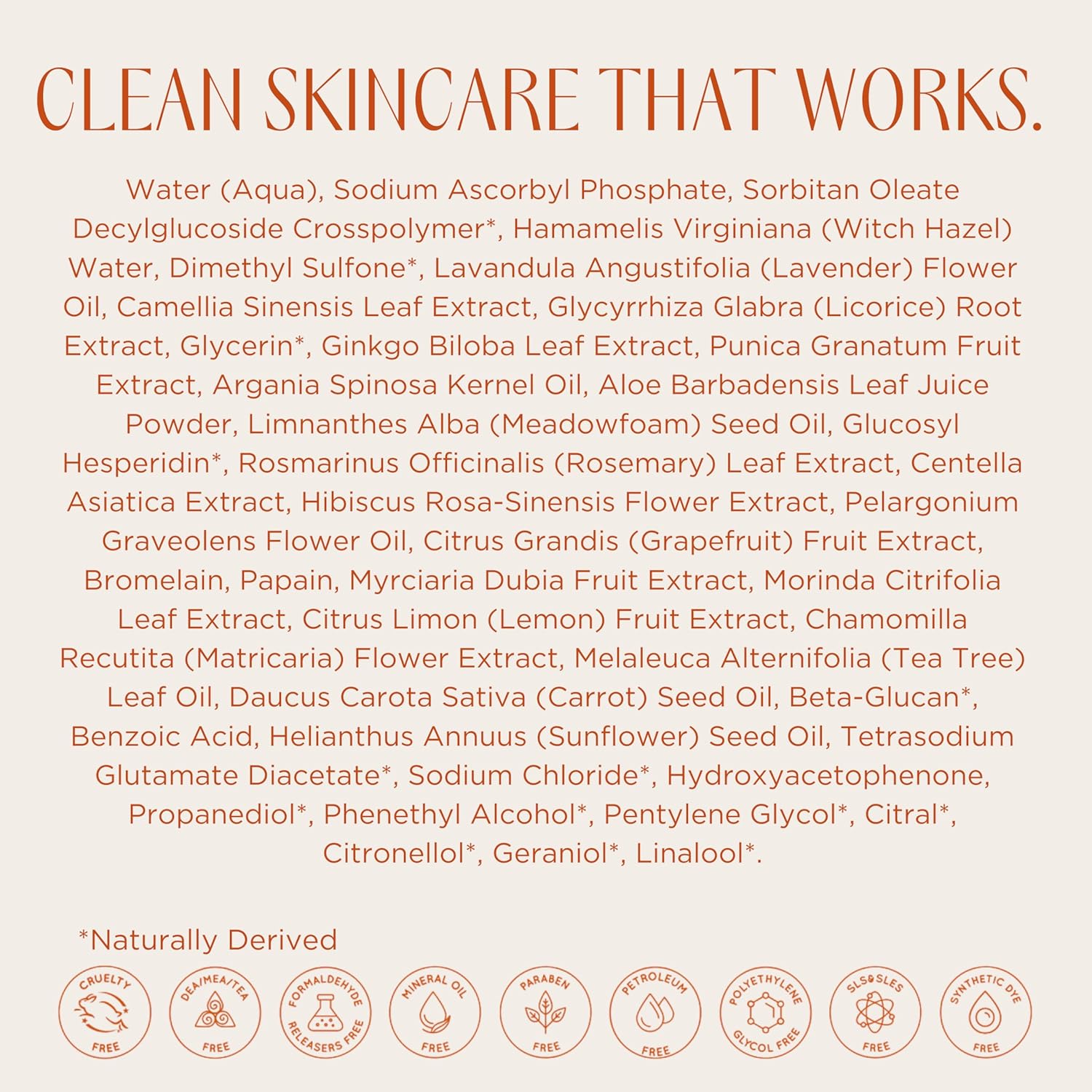 - Key Ingredients: Vitamin C, Witch Hazel, Lavender Oil, Geranium Oil