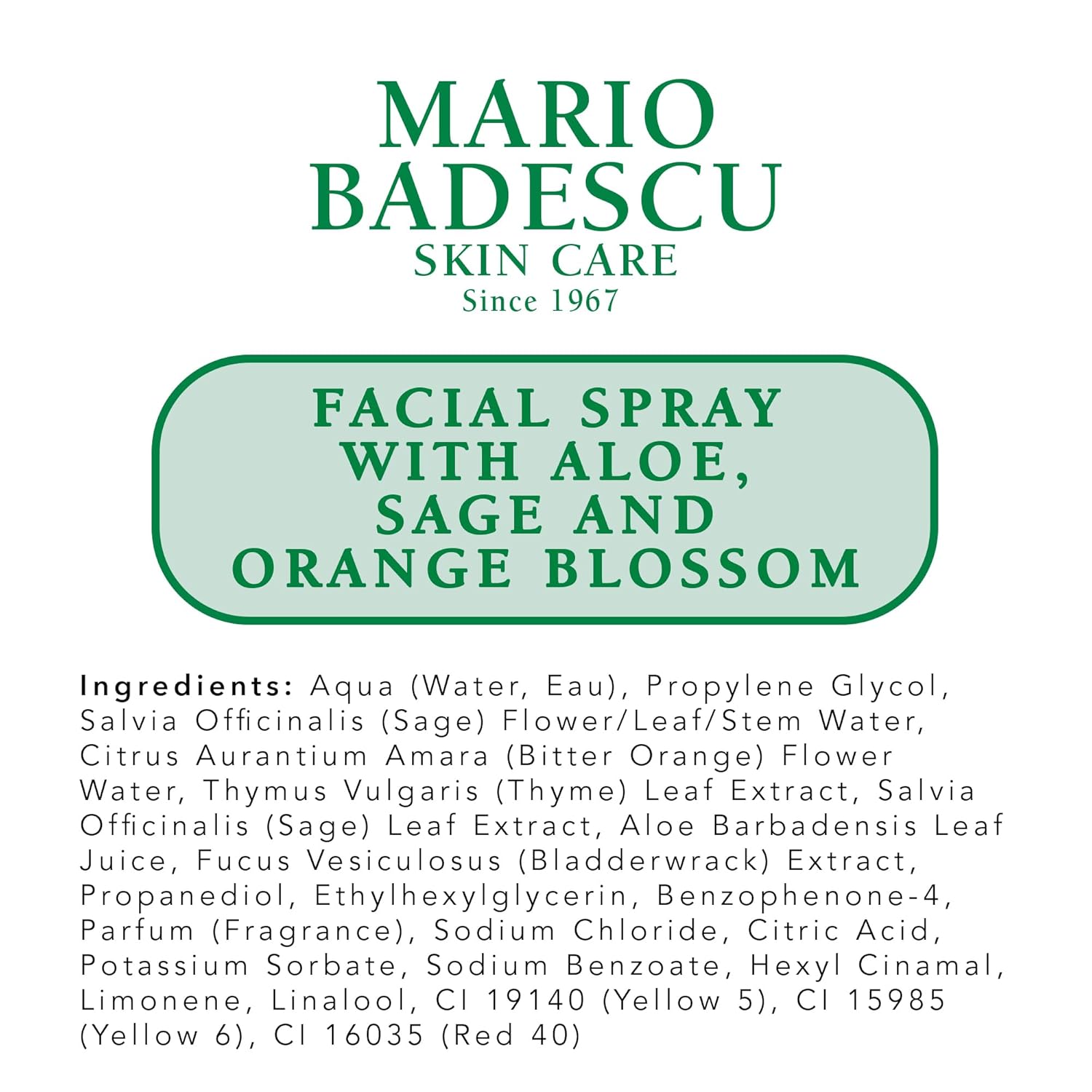 - Key Ingredients: Aloe Vera, Sage Extract, Orange Blossom Water