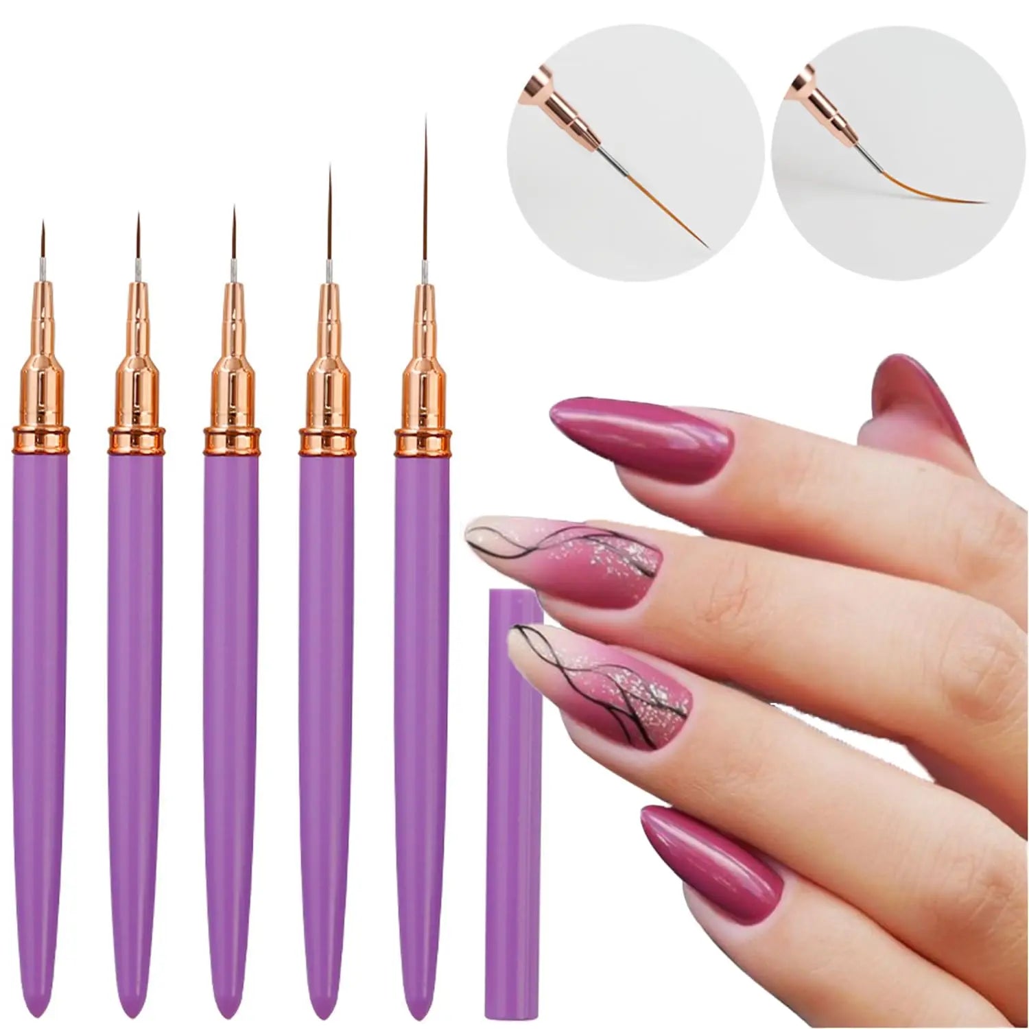 YIKOOLIN - Juego de 5 pinceles delineadores para uñas - Pinceles de gel UV para uñas francesas y diseño de uñas artísticas
