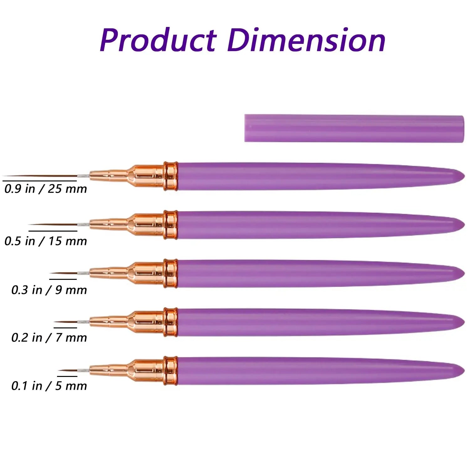 - 5 pinceles delineadores para decoración de uñas en tamaños y longitudes de punta surtidos