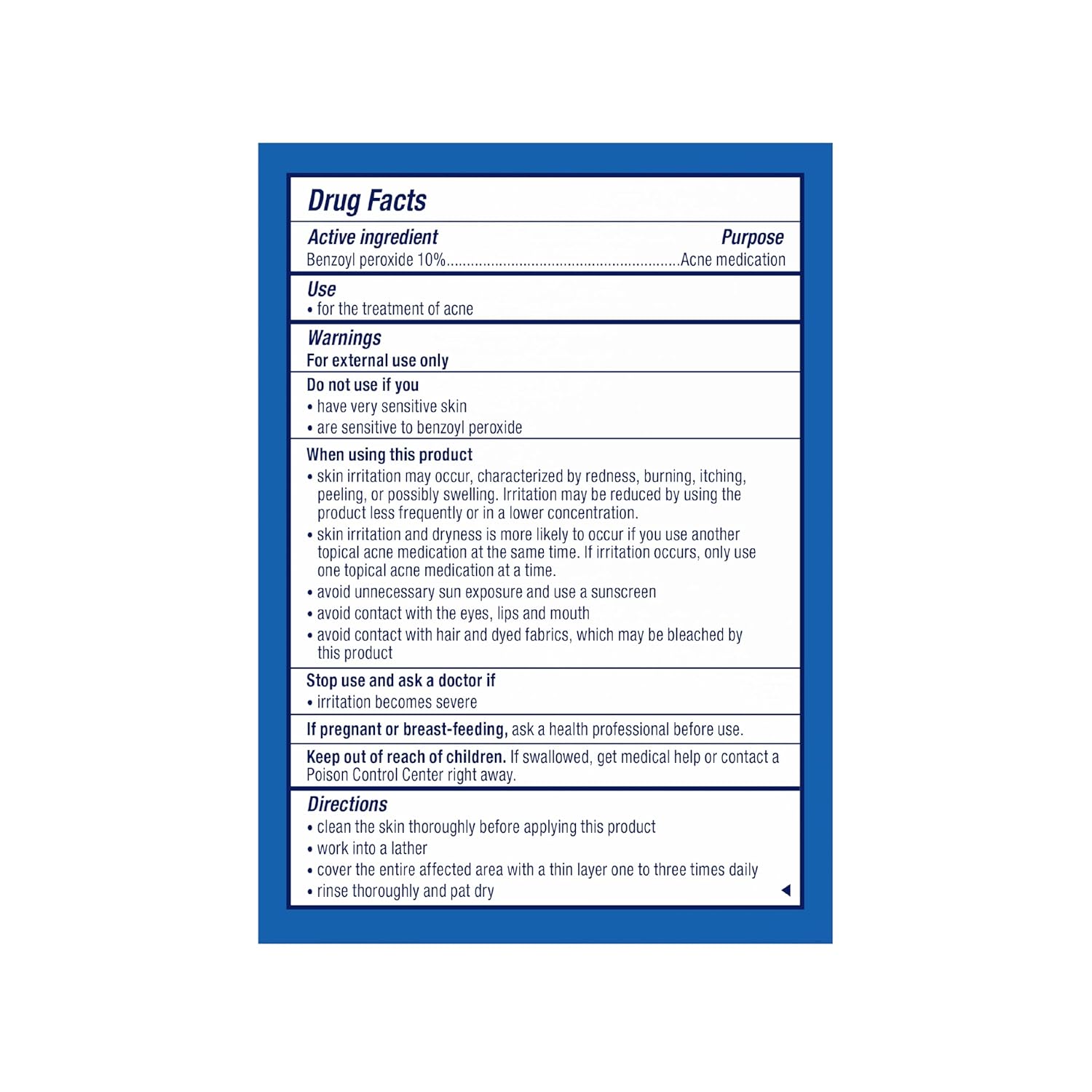 - Active Ingredient: 10% Benzoyl Peroxide