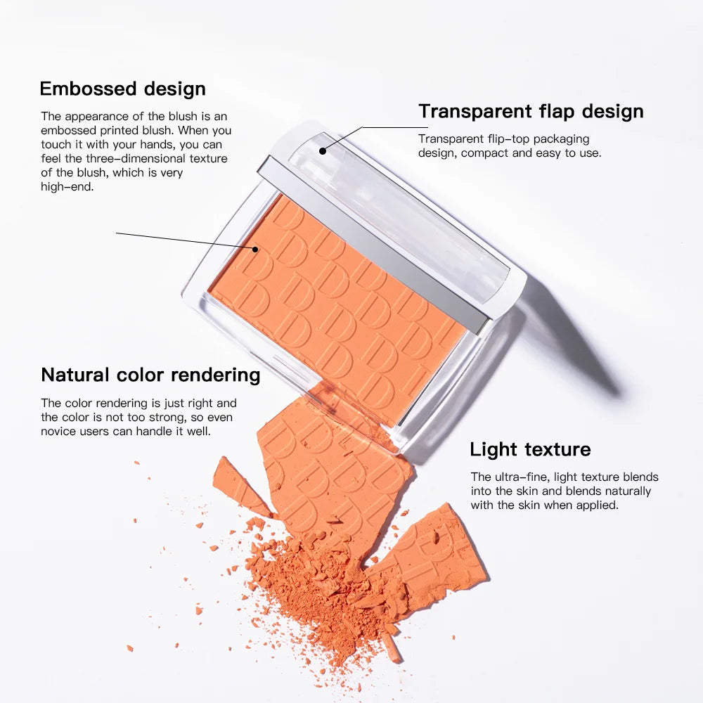Dale un toque radiante a tus mejillas con la paleta de rubor mate con relieve de 6 colores . Con un diseño en relieve y polvos ultrafinos, este rubor de alta pigmentación se difumina a la perfección para un acabado suave y natural. Ya sea que prefieras un sutil brillo rosado o un toque intenso, los seis tonos versátiles te permiten crear diversos looks de maquillaje fácilmente. Su fórmula duradera y fácil de aplicar le da a tus mejillas un toque suave y luminoso para cualquier ocasión.