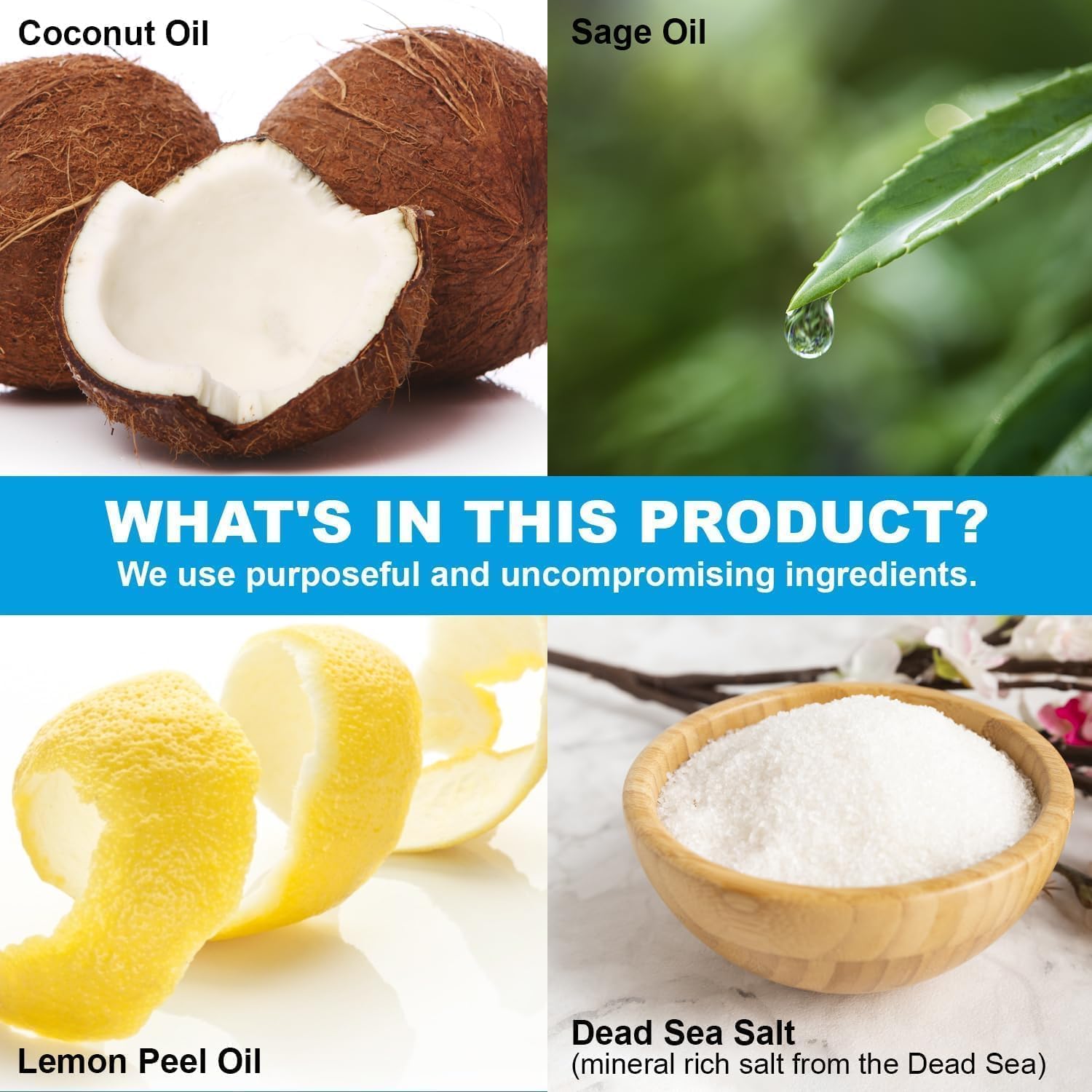 Active Ingredients | Coconut Oil, Lemon Peel, Sage Oil, Dead Sea Salt |
