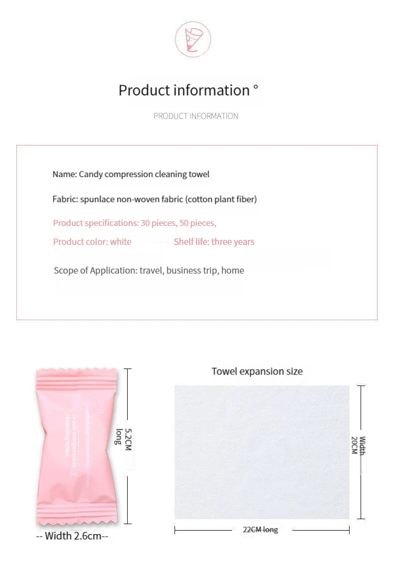 50 toallas de algodón comprimidas para viajes y cuidado de pieles sensibles