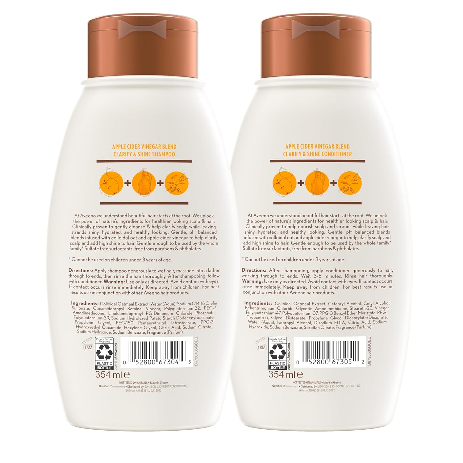 Aveeno Apple Cider Vinegar Shampoo & Conditioner Set | Clarifying, Nourishing & Shine Boost for Oily or Dull Hair | Paraben & Dye-Free (12 fl oz, 2-Pack)