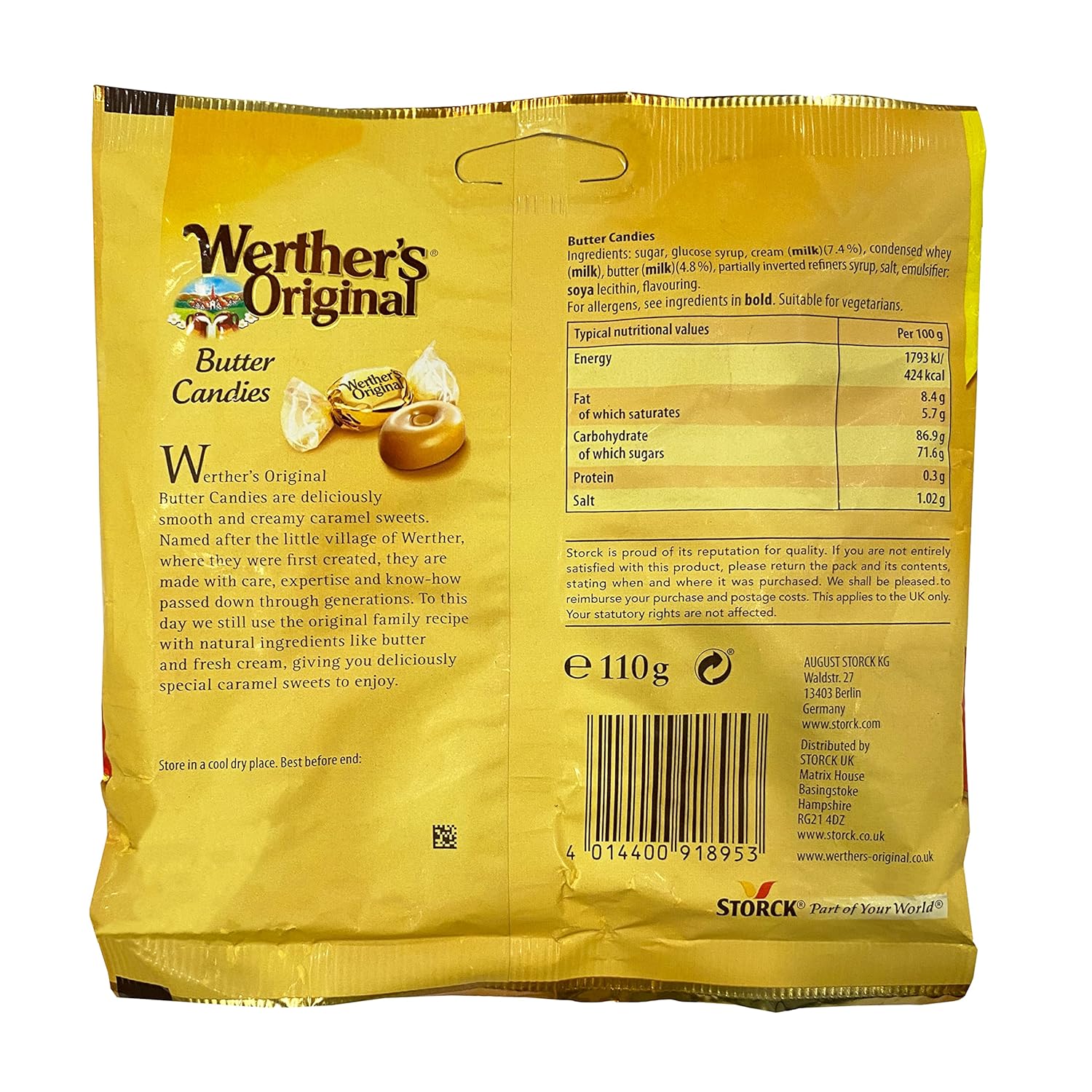 - 1 x 110g Bag of Werther’s Original Butter Candy