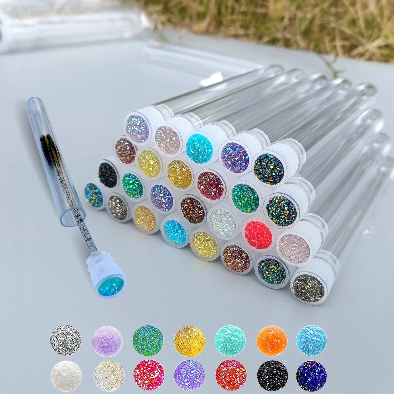 LuxuryGlow 50Pcs Reusable Eyebrow & Eyelash Brush Tubes – Dustproof Sparkling Makeup Brush Holders