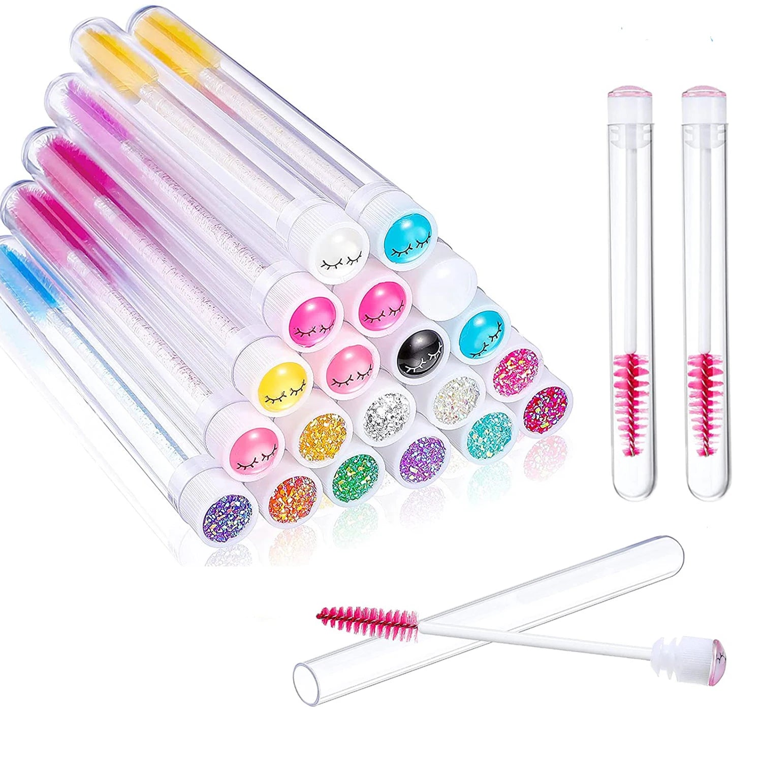 50Pcs Reusable Eyebrow & Eyelash Brush Tubes – Dustproof Sparkling Makeup Brush Holders