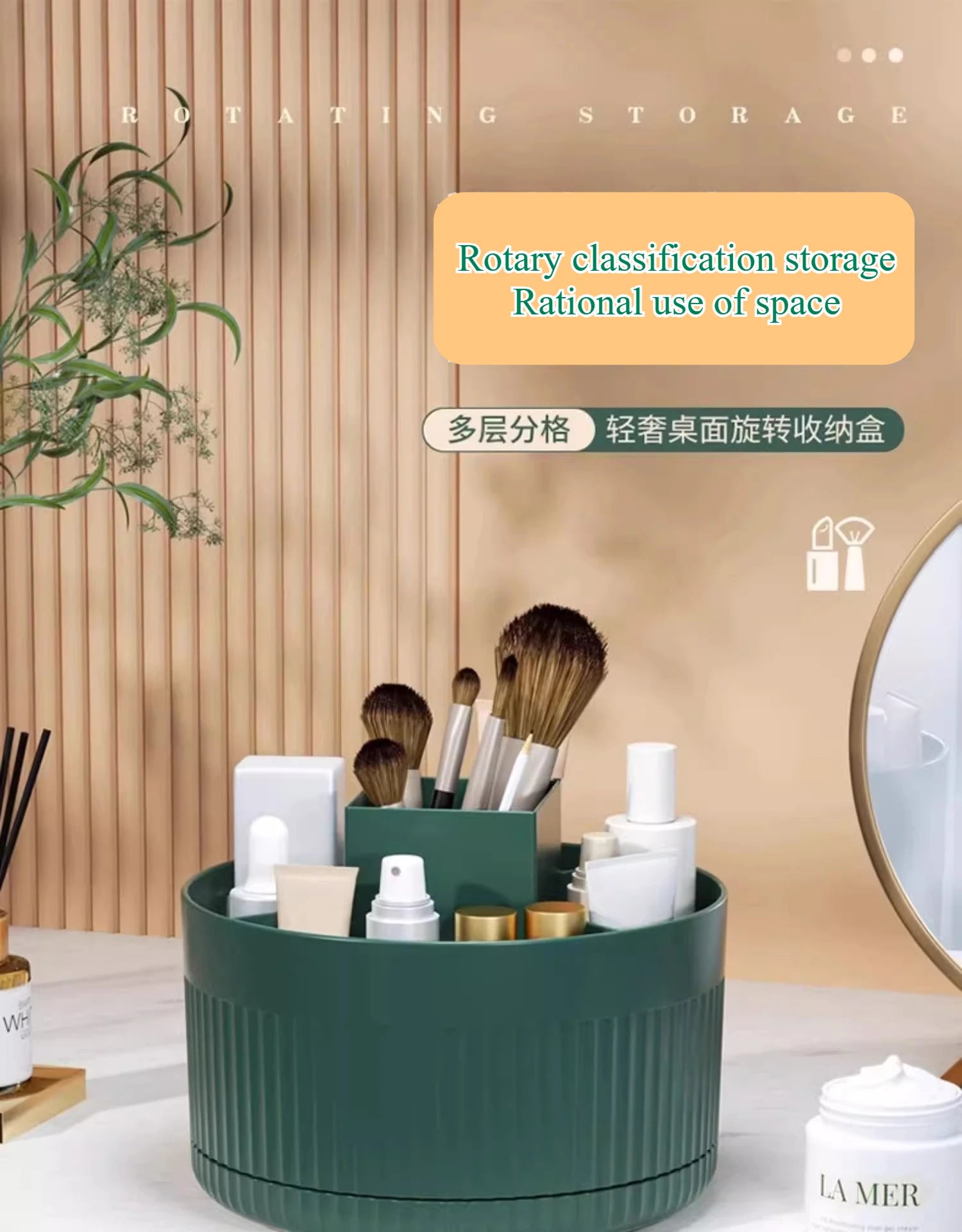 360° Rotating Makeup Organizer Box — Desktop Cosmetic & Jewelry Holder