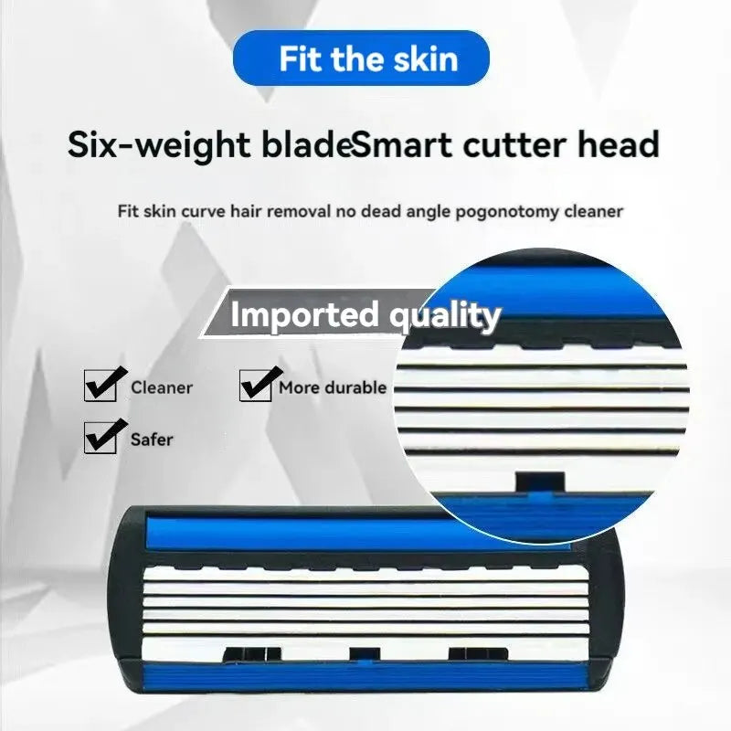 6-Blade Manual Men’s Razor | Precision Shaving with Easy Blade Replacement