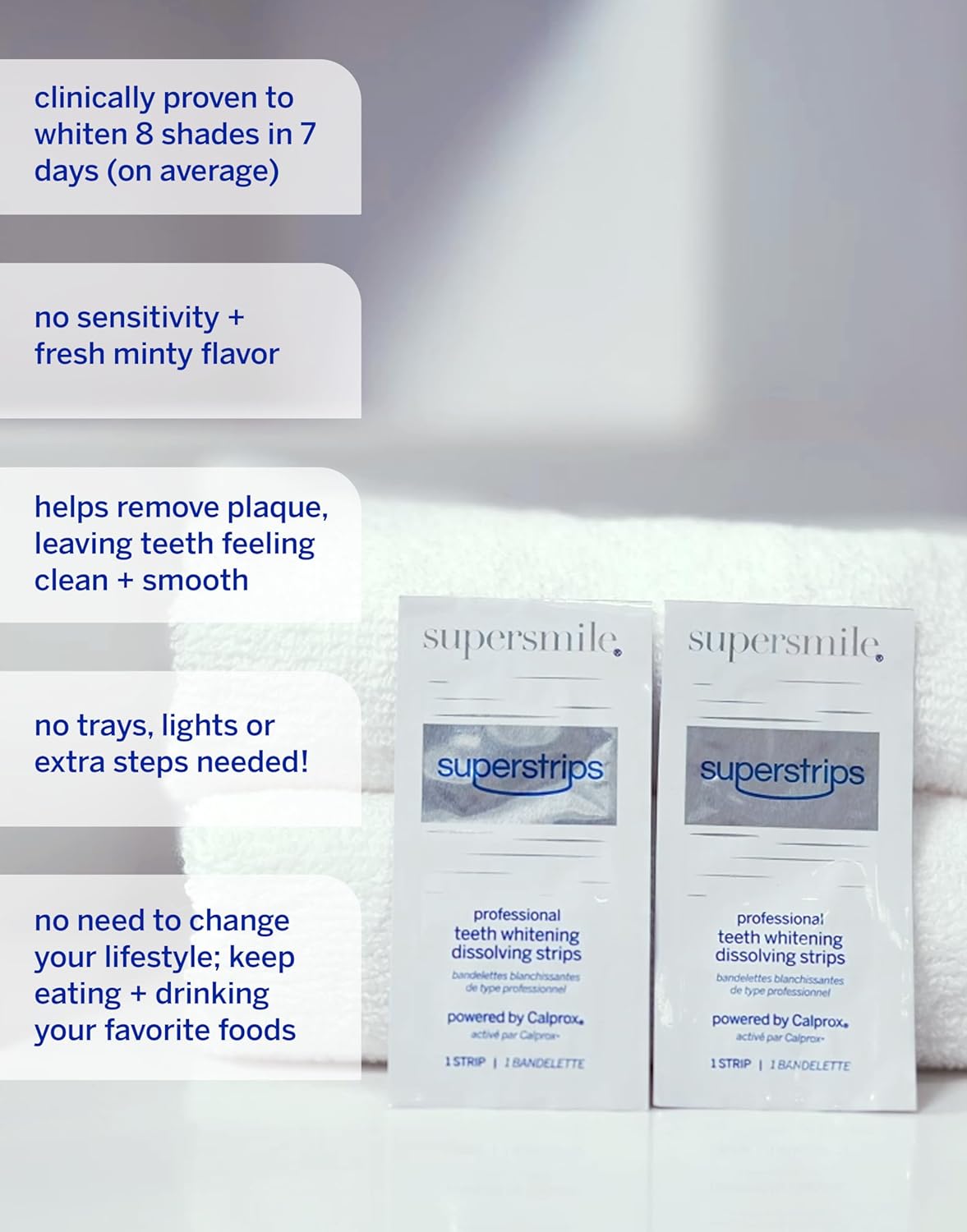 Dissolving Superstrips by Supersmile – Professional Teeth Whitening Strips | Enamel Safe, Sensitive Teeth Formula