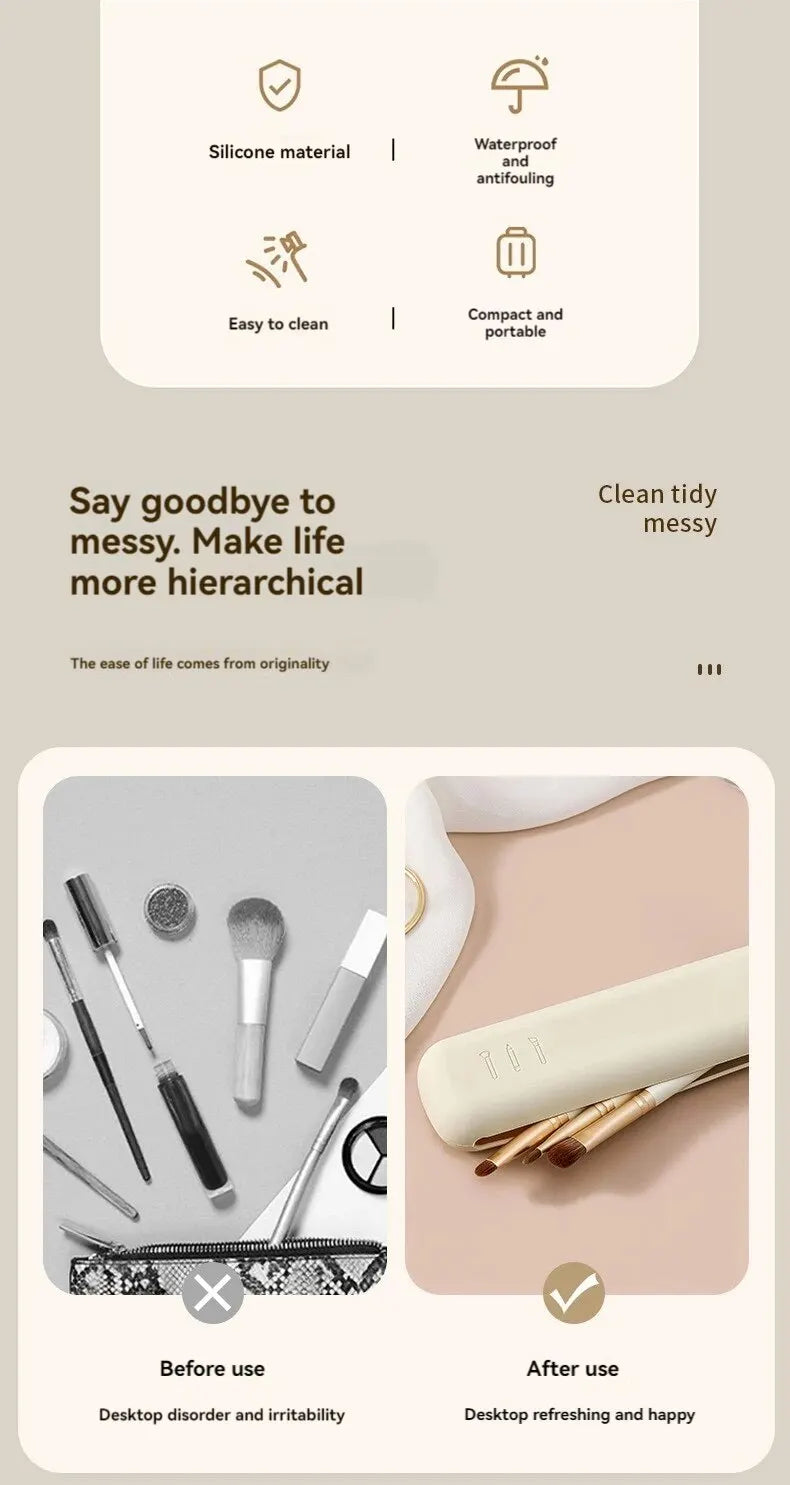 LuxuryGlow Silicone Makeup Brush & Brow Pencil Case | Dustproof Portable Travel Pouch