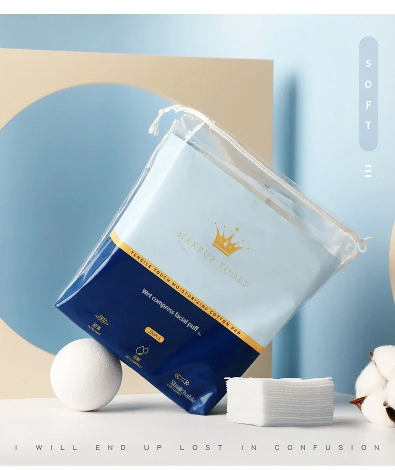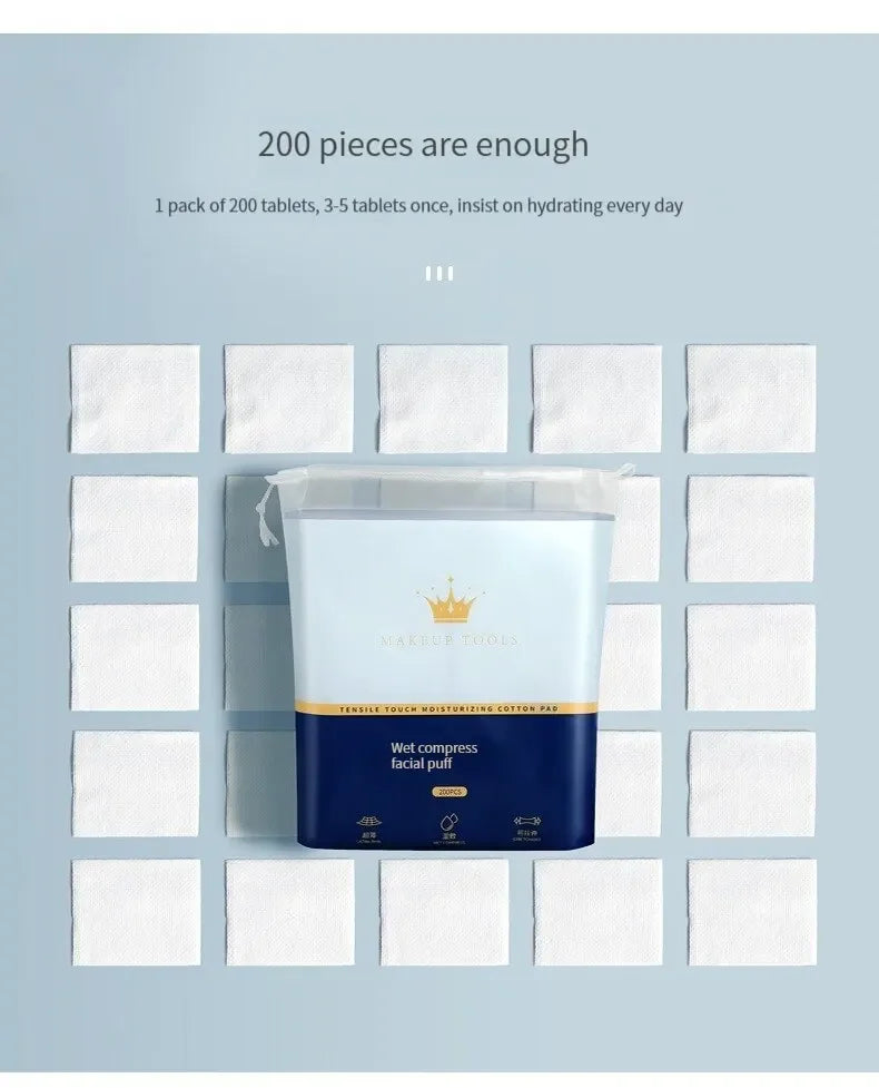 200PCS Wet Cotton Stretch Pads | Disposable Makeup Remover & Mask