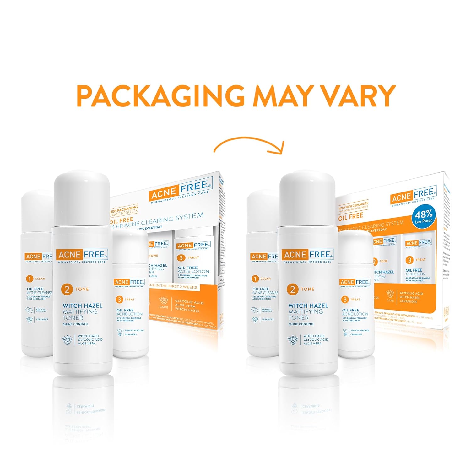 AcneFree 3 Step 24 Hour Acne Treatment Kit – Oil-Free Cleanser, Witch Hazel Toner & Acne Lotion with Benzoyl Peroxide – Dermatologist Recommended Acne Solution, 60 Day Supply