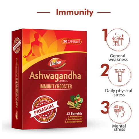 Dabur Ashwagandha Capsules (20 Capsules) – Immunity, Stress & Energy Support