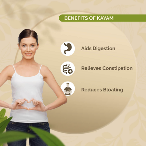Kayam Tablet is used to relieve chronic constipation, gas, acidity, and irregular bowel movements.