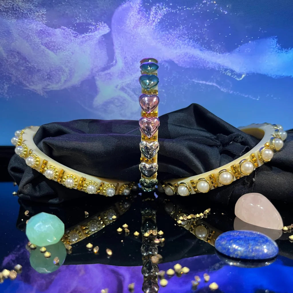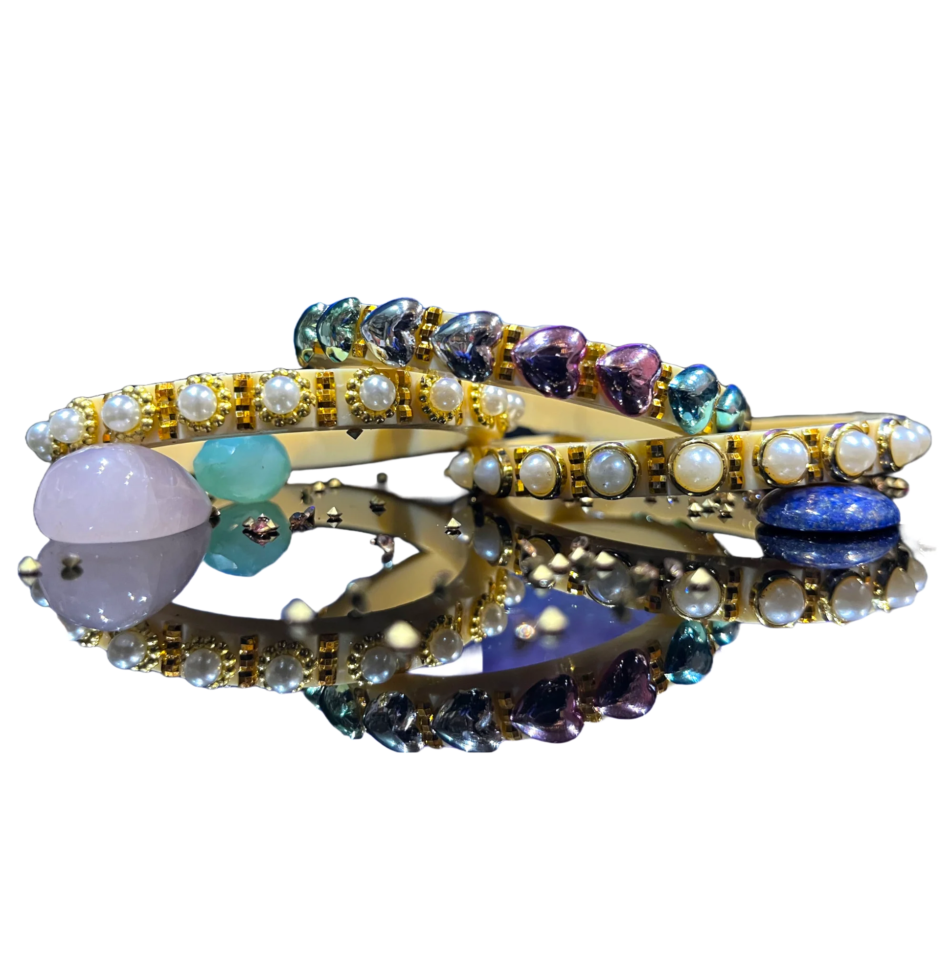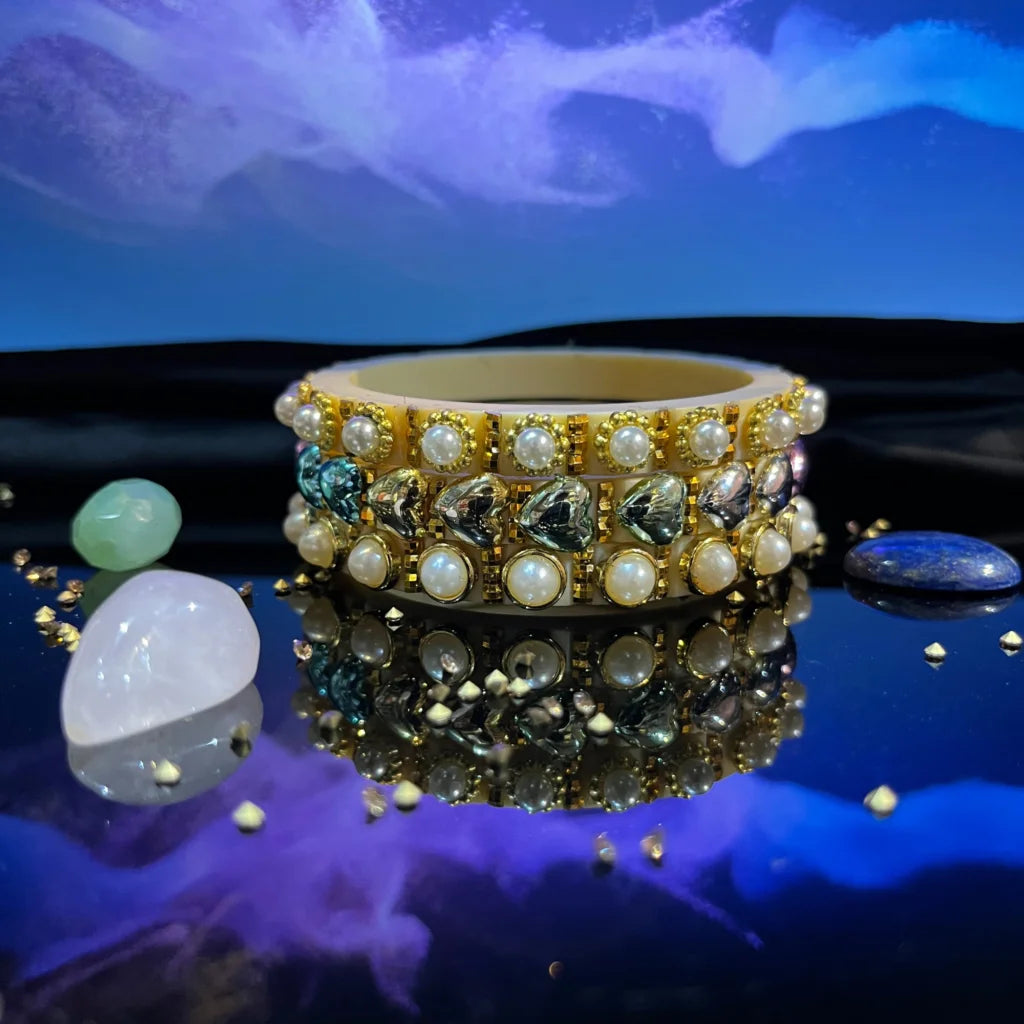 Handmade Classy Plastic Bangles – Gold Plated with Pearl Clusters | LuxuryGlow