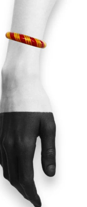 A: Yes, each bangle is handcrafted by Jaipur artisans with the traditional Leheriya pattern.