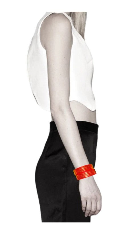 Elevate your style with our Handmade Jaipur Red Lac Bangles, delicately gold-plated and finished with an antique handcrafted touch. Each piece is meticulously crafted by skilled artisans using premium Lac material, ensuring durability, comfort, and elegance.