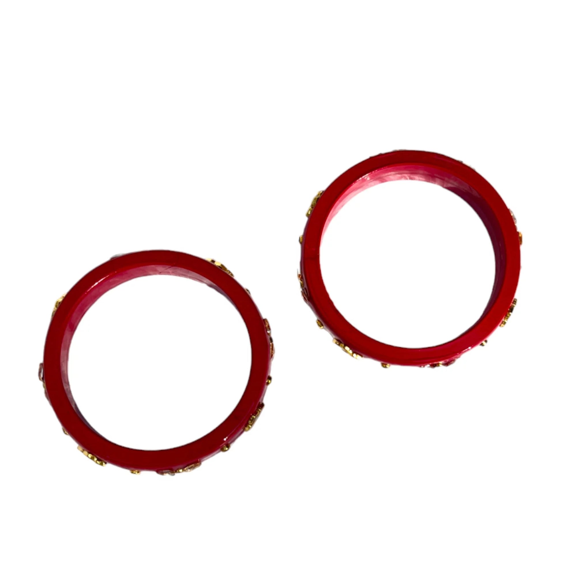 - 1 Pair of Red Glossy Handcrafted Lac Bangles with Mirror Work